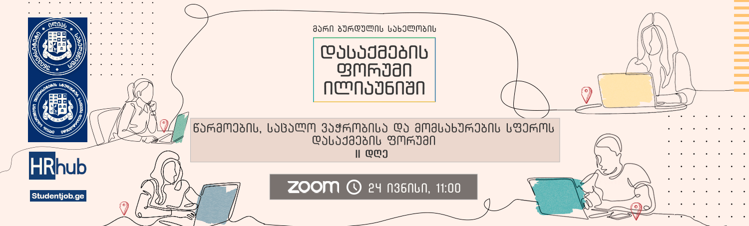 24 ივნისს, ხუთშაბათს,11:00-დან 18:00 საათის ჩათვლით, მარი ბურდულის სახელობის დასაქმების ფორუმის ფარგლებში გაიმართება წარმოების, საცალო ვაჭრობისა და მომსახურების სფეროს დამსაქმებელთა შეხვედრები ილიაუნის სტუდენტებსა და კურსდამთავრებულებთან.