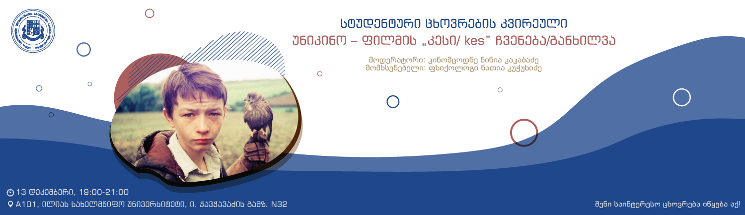 სტუდენტური ცხოვრების კვირეულის ფარგლებში 13 დეკემბერს, 19:00-21:00 საათზე, გაიმართება ფილმის “კესი/ kes” ჩვენება/განხილვა.