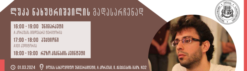 1-ელ მარტს, 16:00-დან 19:00 საათამდე ილიას სახელმწიფო უნივერსიტეტის A კორპუსში გაიმართება უნიმარკეტი ლუკას გადასარჩენად.